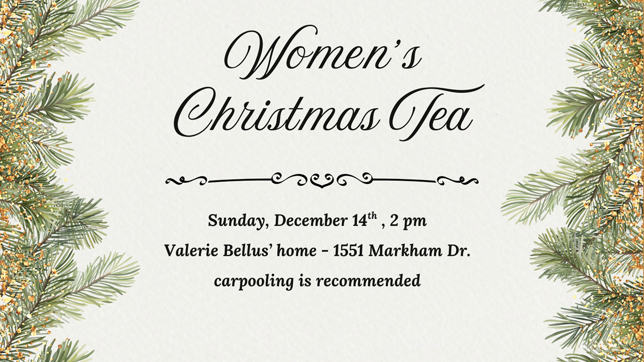 The Women’s Christmas Tea will be at Valerie Bellus’ home. Carpooling is recommended, so find a friend and share a ride.