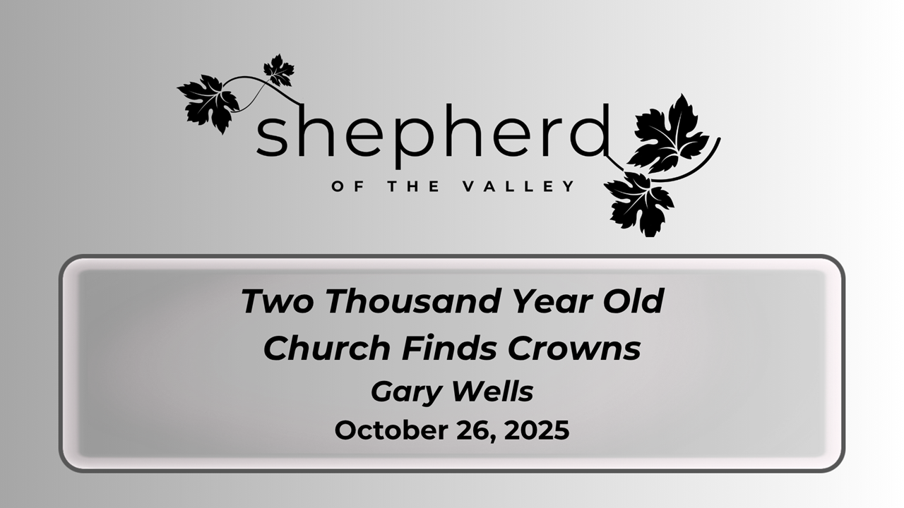 Shepherd 10/26/25 Shepherd 10/26/25 Two Thousand Year Old Church Finds Crowns Gary Wells Read More Shepherd 10/24/25 Shepherd 10/24/25 Jesus Changes Everything Tommy Moon Read More Shepherd 10/24/25 Shepherd 10/24/25 10/9/25 Paul's Heartache and God's Freewill Read More Shepherd 10/12/25 Shepherd 10/12/25 The Mystery of Mercy Tommy Moon Read More Shepherd 9/28/25 Shepherd 9/28/25 A Portrait of Grace: A Call to Vocation Tommy Moon Read More Shepherd 9/21/25 Shepherd 9/21/25 A Romans Recap Tommy Moon Read More Shepherd 9/19/25 Shepherd 9/19/25 The Missional Church: A Royal Priesthood Tommy Moon Read More Shepherd 9/7/25 Shepherd 9/7/25 The Discipling Church: Not Just for Super-Christians Tommy Moon Read More Shepherd 8/31/25 Shepherd 8/31/25 The Liturgical Church Tommy Moon Audio Block Double-click here to upload or link to a .mp3. Learn more Read More Shepherd 8/24/25 Shepherd 8/24/25 Is the Church Still Relevant? Tommy Moon Read More Older Posts